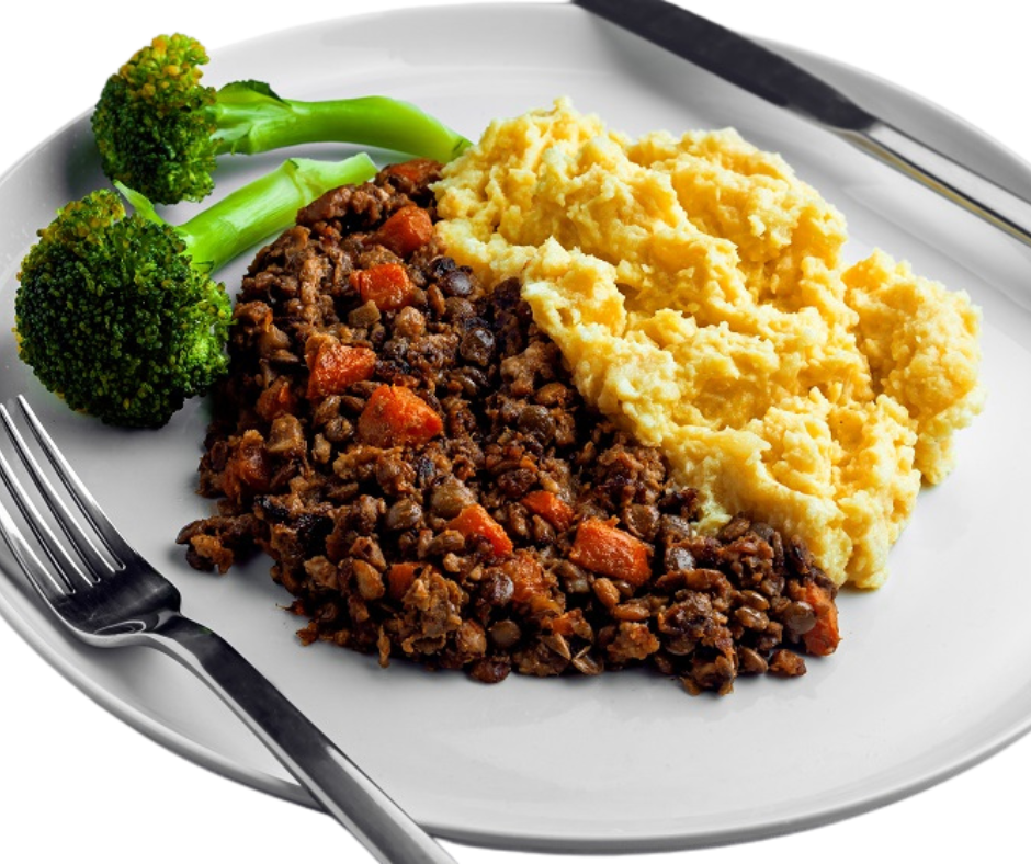 Organic, grass fed, minced beef slow cooked with red wine, carrots, turnips & peas. Our luxury Cottage pie is topped with smooth organic Maris Piper potatoes, cream & a smidge of Parmesan.